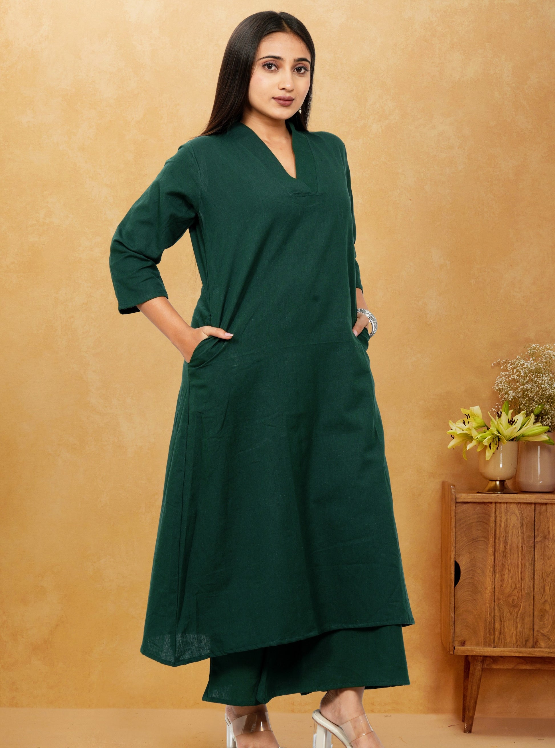 Ruhani Bottle Green Cotton A-Line long Co-Ord Set