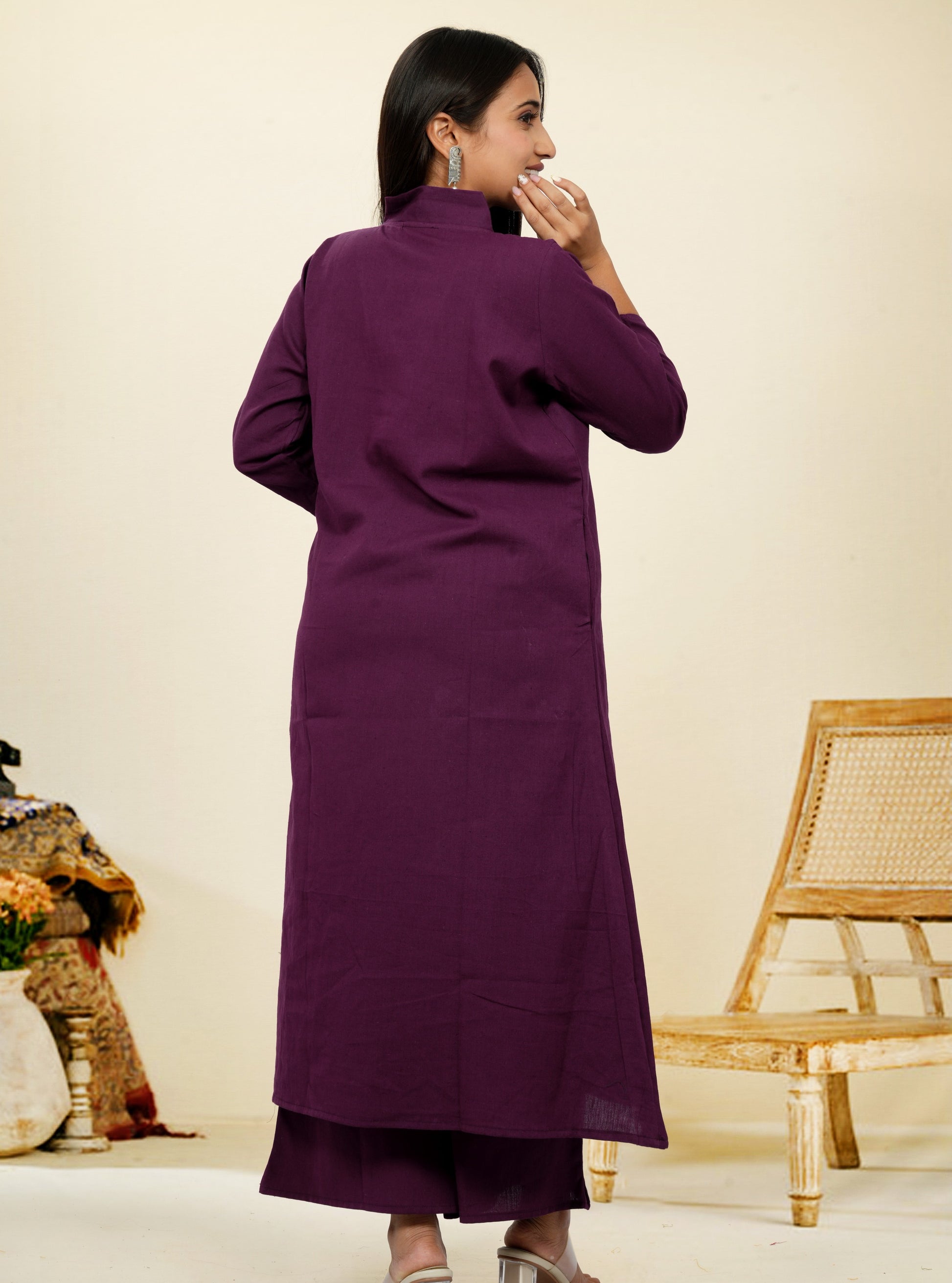 Ruhani Purple Cotton A-Line long Co-Ord Set